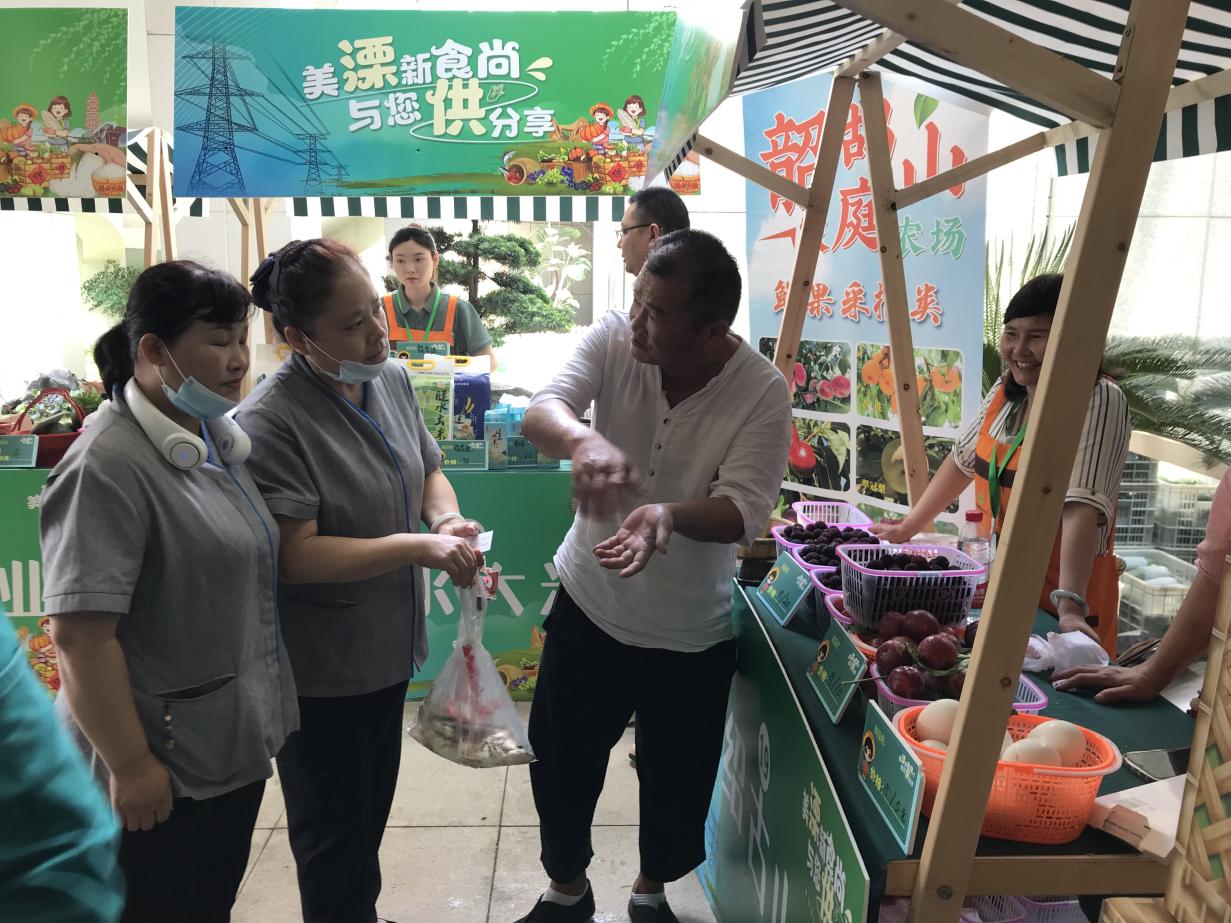 “感谢供销社给我们搭建的平台,平时还要愁销路,今天上午我带的500枚新鲜鸭蛋仅用2小时就卖完了。”来自溧水养殖专业合作社的尤姐喜笑颜开地说。6月19日-6月21日,南京市溧水区供销合作总社、溧水区商务局精心组织的美溧生活端午市集系列活动在南京供电公司、新城大厦、市级机关3处热闹开集。远近闻名的芮记手抓鸡、营养美味的黄教授牛肉、应季水果杨梅、蓝莓、西瓜、桃子……30个展位展示着100多种溧水优质农产品,现场前来咨询购买农产品的人络绎不绝。