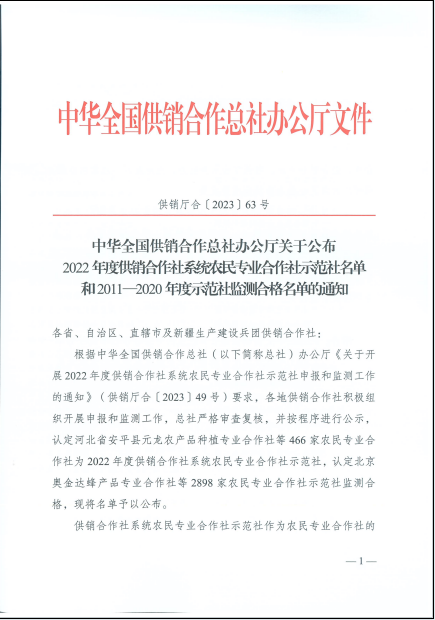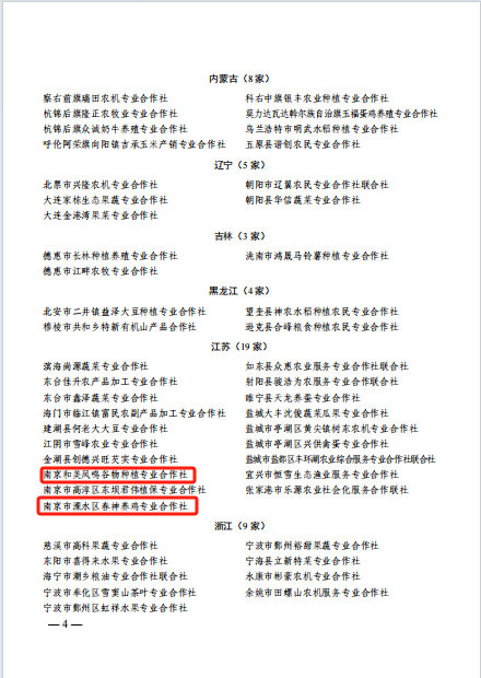 近日,南京和美凤鸣谷物种植专业合作社和溧水区春神养鸡专业合作社被中华全国供销合作总社办公厅评为2022年国家农民专业合作社示范社。