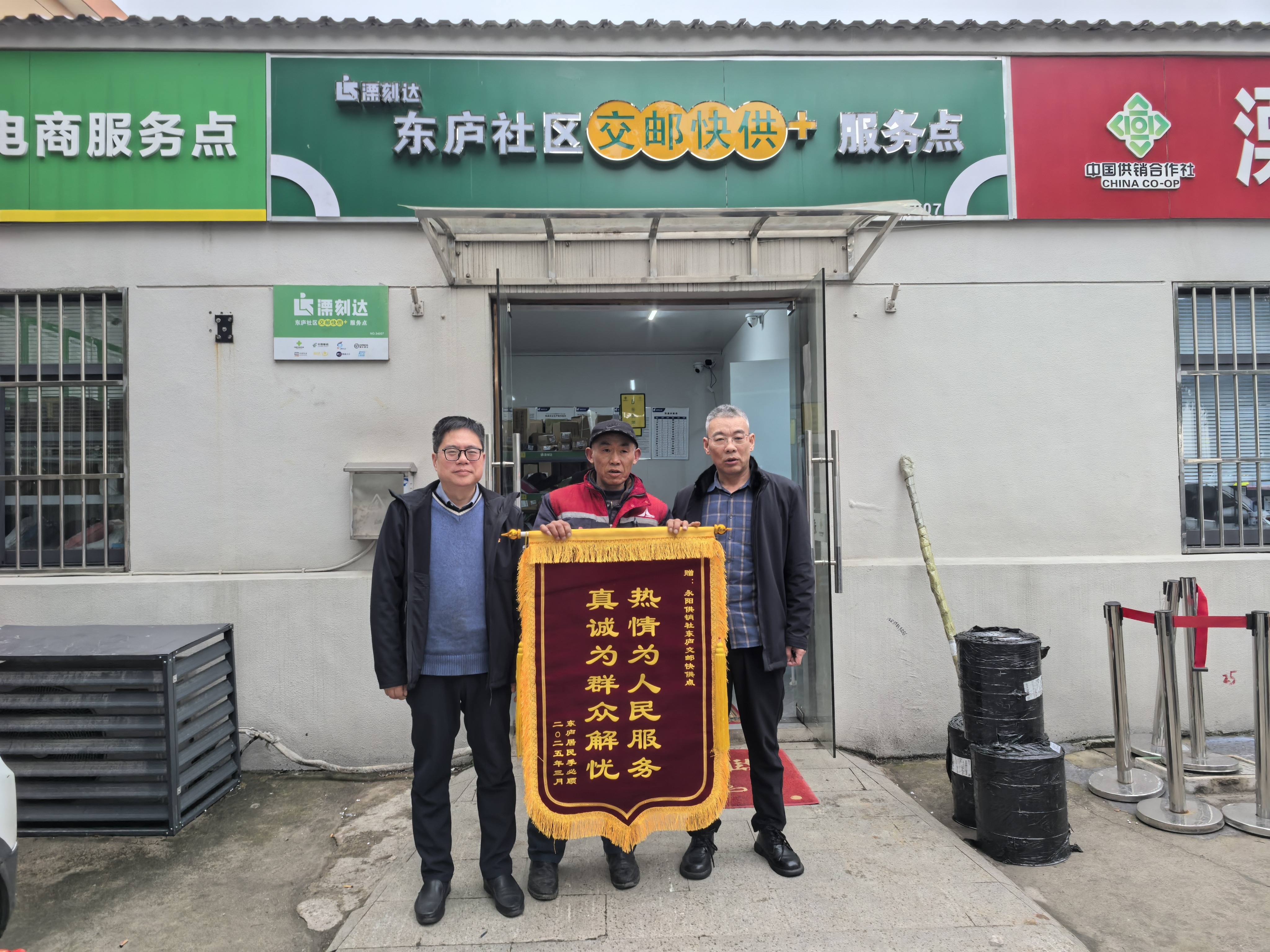 第二天,当事人季师傅带着一面锦旗来到供销社快递服务点,向工作人员再次表达谢意。他说,永阳供销社“交邮快供”服务点配套的消防救援站也起到了至关重要的作用。