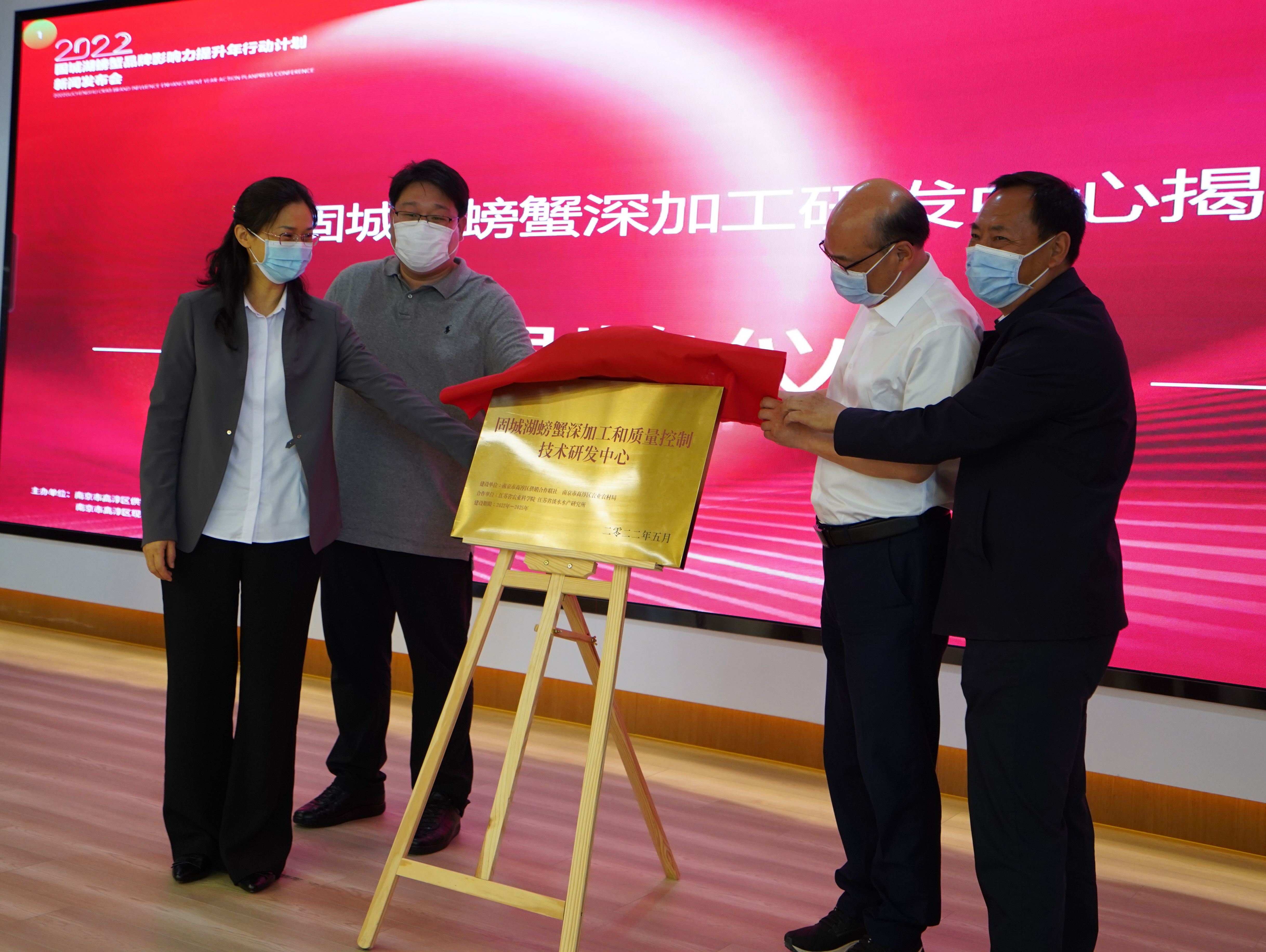 为更好实现固城湖螃蟹产业链全链发展,本次发布活动还举行了固城湖螃蟹深加工和质量控制技术研发中心揭牌仪式。研发中心由江苏省农业科学院、江苏省淡水水产研究所与高淳区共建。该中心投入使用后,将研发新型精深加工产品,提高产品营养健康品质,提升产品档次和附加值,增强产品市场竞争力。该中心负责人、江苏省农业科学院农产品加工研究所研究员刘小莉表示:“以研发中心为平台,通过技术研发、资源互补、人才互通等举措能够有效提升固城湖螃蟹品牌,推动提高产业水平,促进一二三产业融合发展。”
