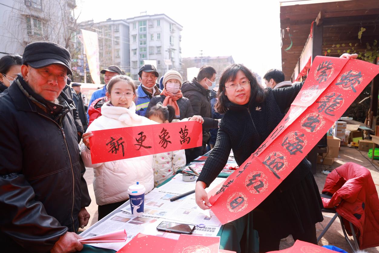 火红的灯笼映出喜庆的光芒,吉祥的春联贴出新年的希望。本次年货大集,除了农产品展销外,更透着浓浓的中国年味文化气息。“供贺新春·集庆中华”的龙年门头醒目喜庆,来自社区的志愿者们用歌舞和乐器奏响了新年的乐章,最受市民青睐的当属送福字、写春联、剪窗花活动,由社区特邀的书法老师和传统艺人们用笔尖凝墨香,用巧手绘窗花,为市民朋友们送上了祥瑞和祝福。