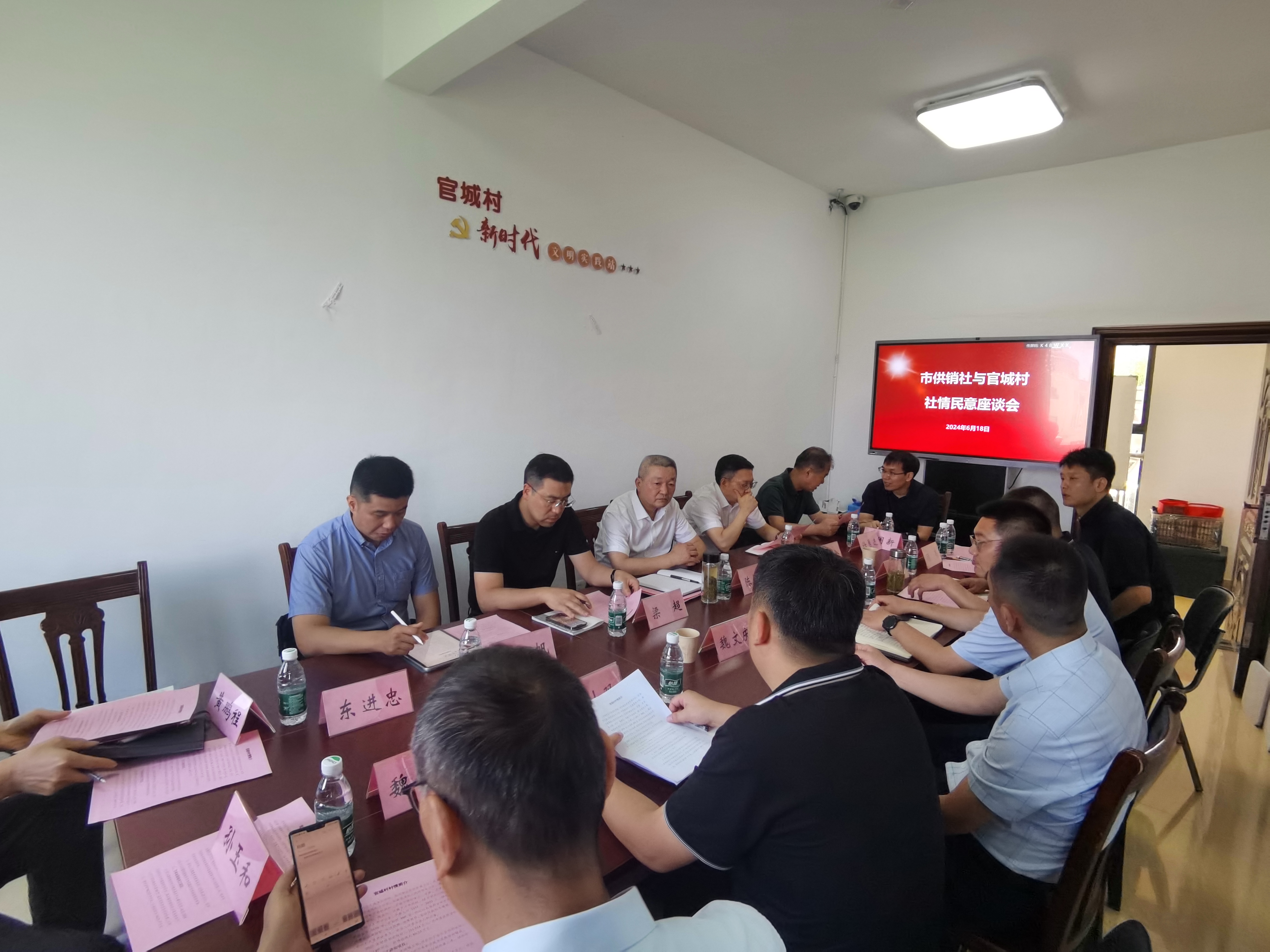 18日下午,市供销合作总社调研组一行来到阳江镇官城村开展社情民意座谈会。官城村党总支书记陈小双、市供销合作总社派驻官城村第一书记顾韦先后发言,介绍官城村基本村情、发展思路和各项工作开展情况,陈恒斌对官城村党总支工作给予了肯定,并对驻村第一书记各项工作的开展提出了具体指导要求,与会人员围绕如何更好开展“双结对、双促进”工作,做大乡村特色产业,推动村集体经济发展壮大等方面积极交流意见看法。大家表示,要把握好结对共建机遇,发挥好各自资源优势,优化和改进工作作风,更好服务农民群众,实现党建质效和治理效能的共同提升。