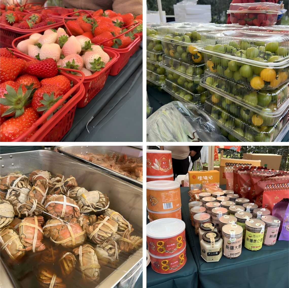本次供销年货大集精心筛选34家南京本地及对口地区优质商户参展,品类丰富、质量上乘:白鹿、太空一号等草莓新品种,果实饱满圆润、色泽鲜红透亮;江宁非遗板鸭、高淳醉蟹、六合活珠子、溧水蓝莓汁等本地特色产品,风味独特、地道正宗;新疆苹果、淮安小番茄等对口帮扶地区特产,新鲜可口、品质优良。活动现场销售火爆、人气十足,多个展位的商品全部售罄。